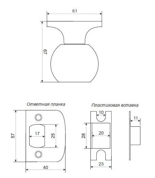 В комплект входит: дверные ручки-кнобы, дверная защелка, ответная планка.