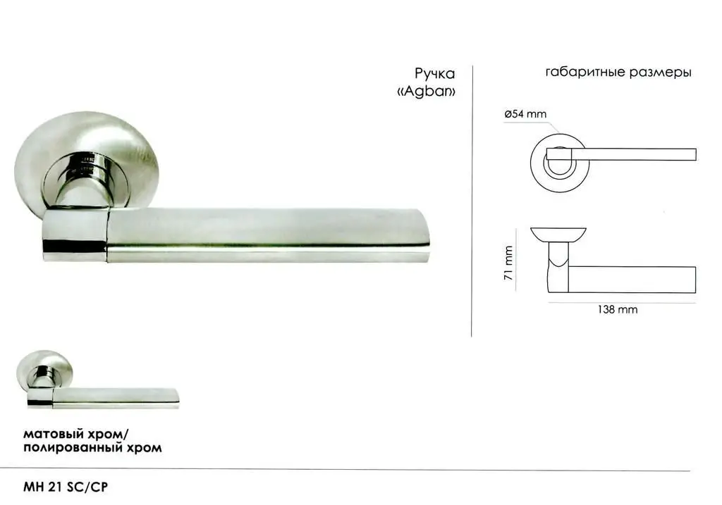 Дверная ручка Morelli MH-21 SC/CP матовый хром/полированный хром