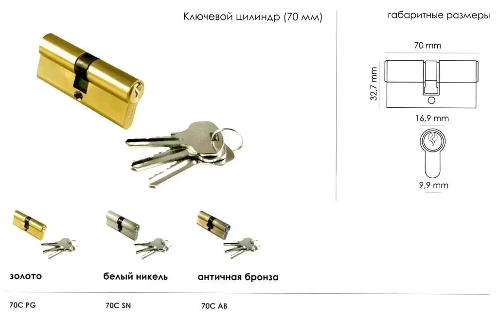 Ключевой цилиндр Morelli 70C-PG золото