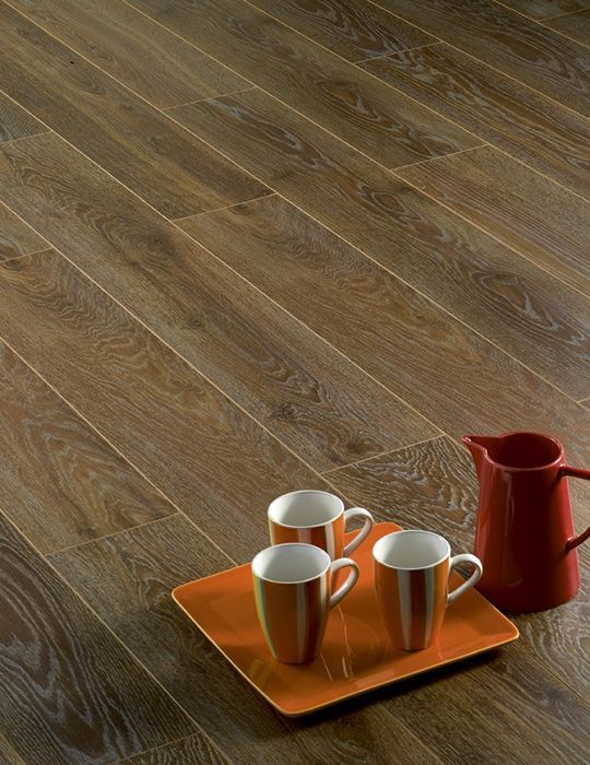 Качественный ламинат 33 класса в традиционном дизайне под однополосную деревянную доску для пола. Синхронное рисунку тиснение и фаска V-образной формы по периметру ламели усиливает впечатление натурального дубового пола.