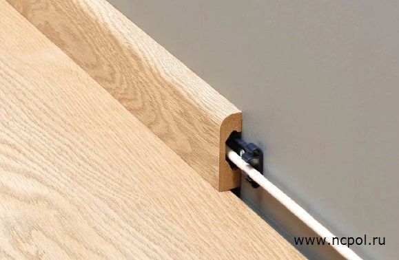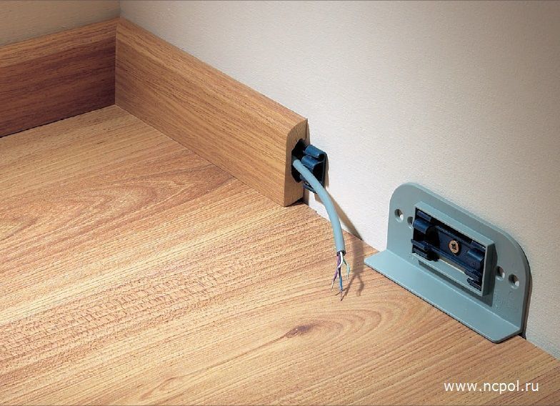 Плинтус имеет специальный паз (кабель канал) с внутренней стороны для скрытой прокладки проводов.