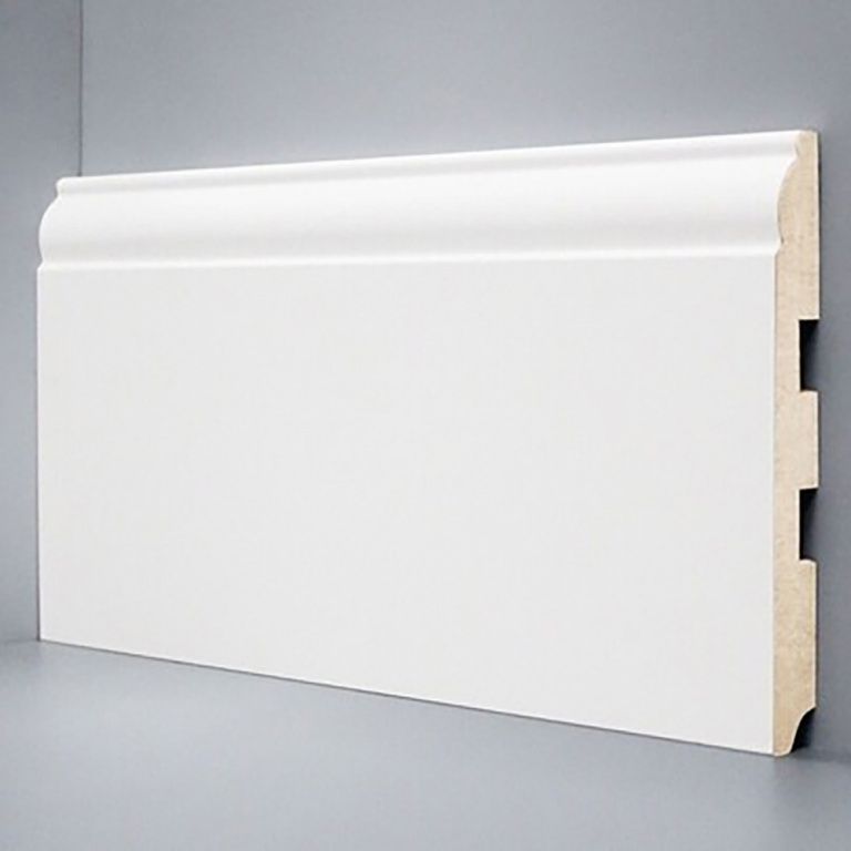 Широкий белый напольный плинтус Deartio. Полностью готов к установке и не требует покраски.