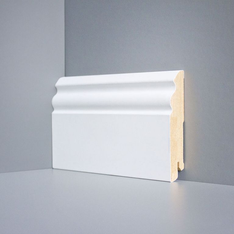 Белый напольный плинтус Deartio. Полностью готов к установке и не требует покраски.