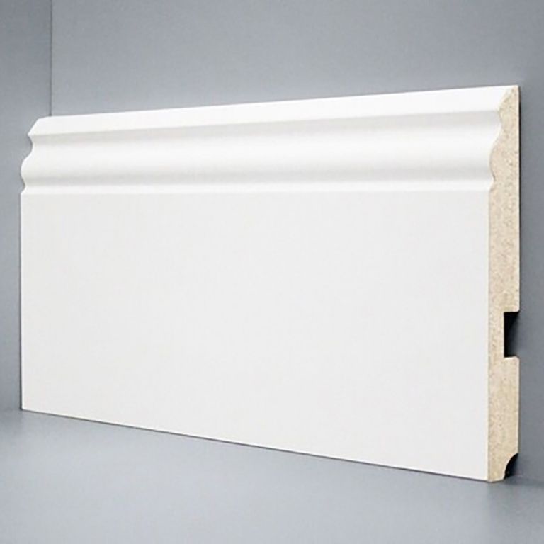 Широкий белый напольный плинтус Deartio. Полностью готов к установке и не требует покраски.
