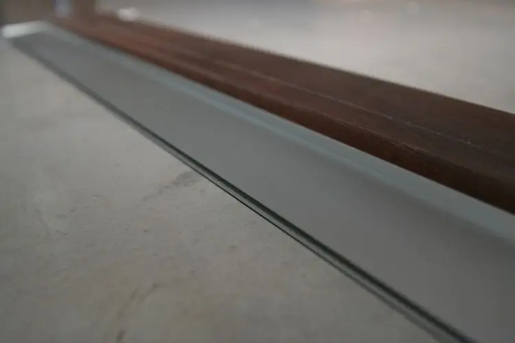 Дверной порог из твердых пород дерева с алюминиевым отливом для дождевой воды;