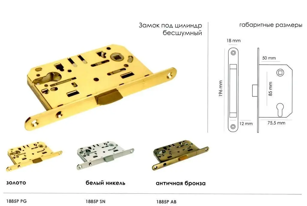 Замок под цилиндр бесшумный Morelli 1885P AB античная бронза